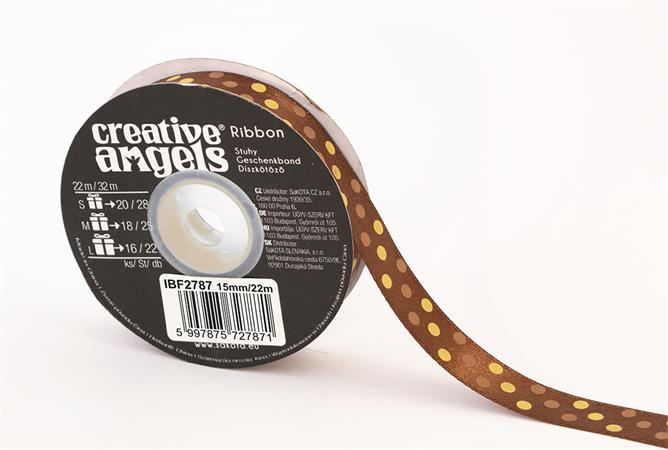 Szatén szalag, 15 mm x 22 m, bronz vegyes pöttyökkel