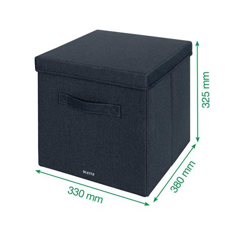 KezdőlapIrodaszerekCsomagolás, tárolásTárolódobozok, ládák és kosarakDoboz, szövet borítású, L méret, LEITZ "Fabric", sötétszürke