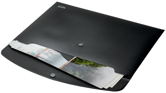 Irattartó tasak, A4, PP, patentos, LEITZ "Recycle", fekete
