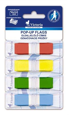 Jelölőcímke, műanyag, 4x36 lap, 43x12,5 mm, VICTORIA OFFICE, vegyes színAlapítvány támogatás 1 Ft