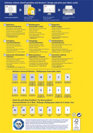 Etikett, univerzális, eltávolítható, 45,7x21,2 mm, AVERY ZWECKFORM, 1440 etikett/csomag