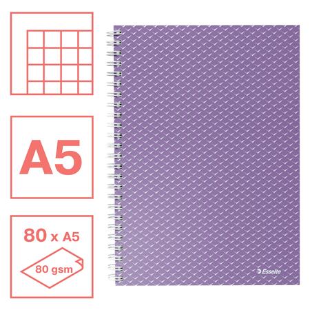 Spirálfüzet, A5, kockás, 80 lap, ESSELTE "Colour`Breeze", levendula