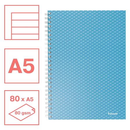 Spirálfüzet, A5, vonalas, 80 lap, ESSELTE "Colour`Breeze", kék