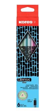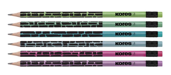 KezdőlapIrodaszerekÍrószerekGrafit- és színes ceruzákGrafitceruza radírral, HB, háromszögletű, KORES "Style Cracked", vegyes metál színek