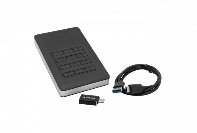 2,5" HDD (merevlemez), 2TB, USB 3.1, jelszavas titkosítás, VERBATIM "Secure Portable", fekete
