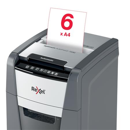 Iratmegsemmisítő, mikrokonfetti, 100 lap, REXEL "Optimum AutoFeed+ 100M"