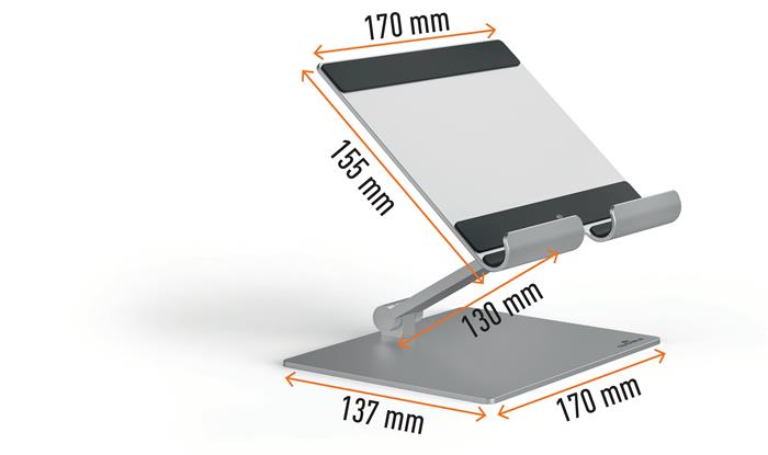 Tablet tartó állvány, asztali, DURABLE "RISE", ezüst