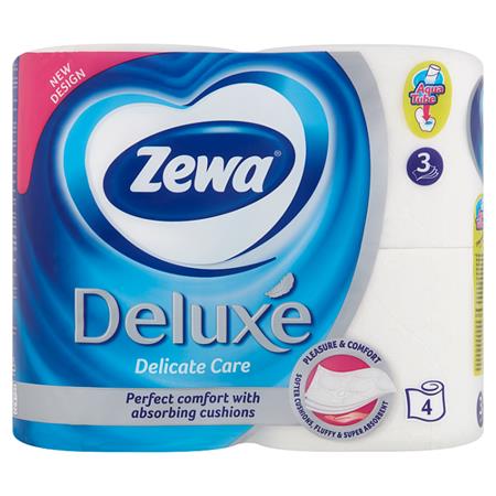 Toalettpapír, 3 rétegű, kistekercses, 4 tekercs, ZEWA "Deluxe", fehér
