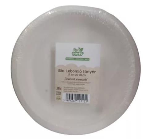 Tányér, PLA, lebomló, 17 cm, 50 db, "Party"